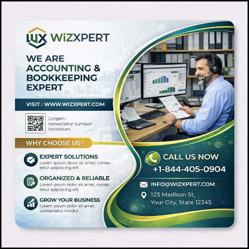 Wiz Xpert LL provides bookkeeping services and organizes your business’s daily financial transactions, such as sales, expenses, and payments. It helps you track income, manage bills, monitor cash flow, and understand your financial position, making accurate records and better business decisions.